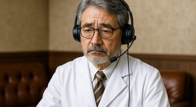 オンライン会議の通知音が鳴り、画面が切り替わる。 そこに現れたのは開業医・上杉隆光(うえすぎたかみつ)の姿だった。 背景は「上杉医院」改め「上杉クリニック」の応接室。 以前は昭和の名残を引きずった古びた壁紙と安っぽいソフ […]